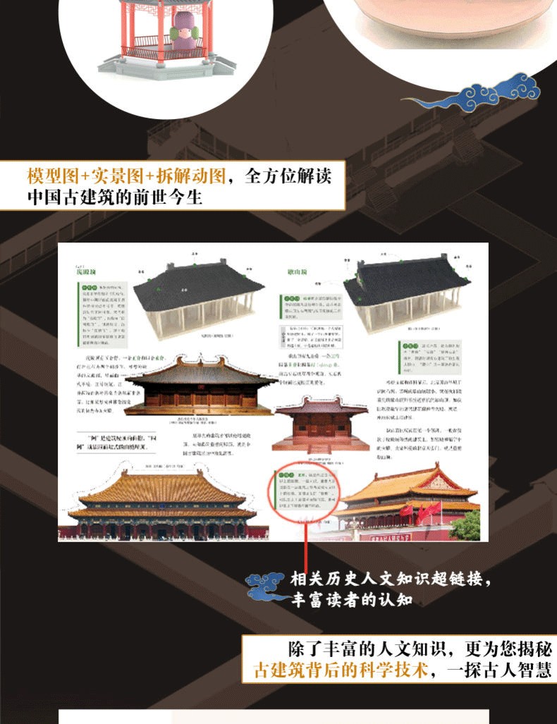 1.從中國古建築起源講起,涵蓋城池、宮殿、民居、壇廟、陵墓和園林6大類型,另有5種中國古建築的趣味結構和構築物等您發現2.8大系列古建築模型,“ 解剖」中國古建築;48個3D小動畫,掃一掃二維碼,讓古建築「動」起來3.蘊藏在古建築中的聲學、力學等古人智慧和豐富的歷史人文知識,一本書助您 玩得清楚、看得明白,帶您一探中國古建築之美4.此書在手,古建不愁。 親子共讀的趣味讀物、古建築文化旅行與科普手冊