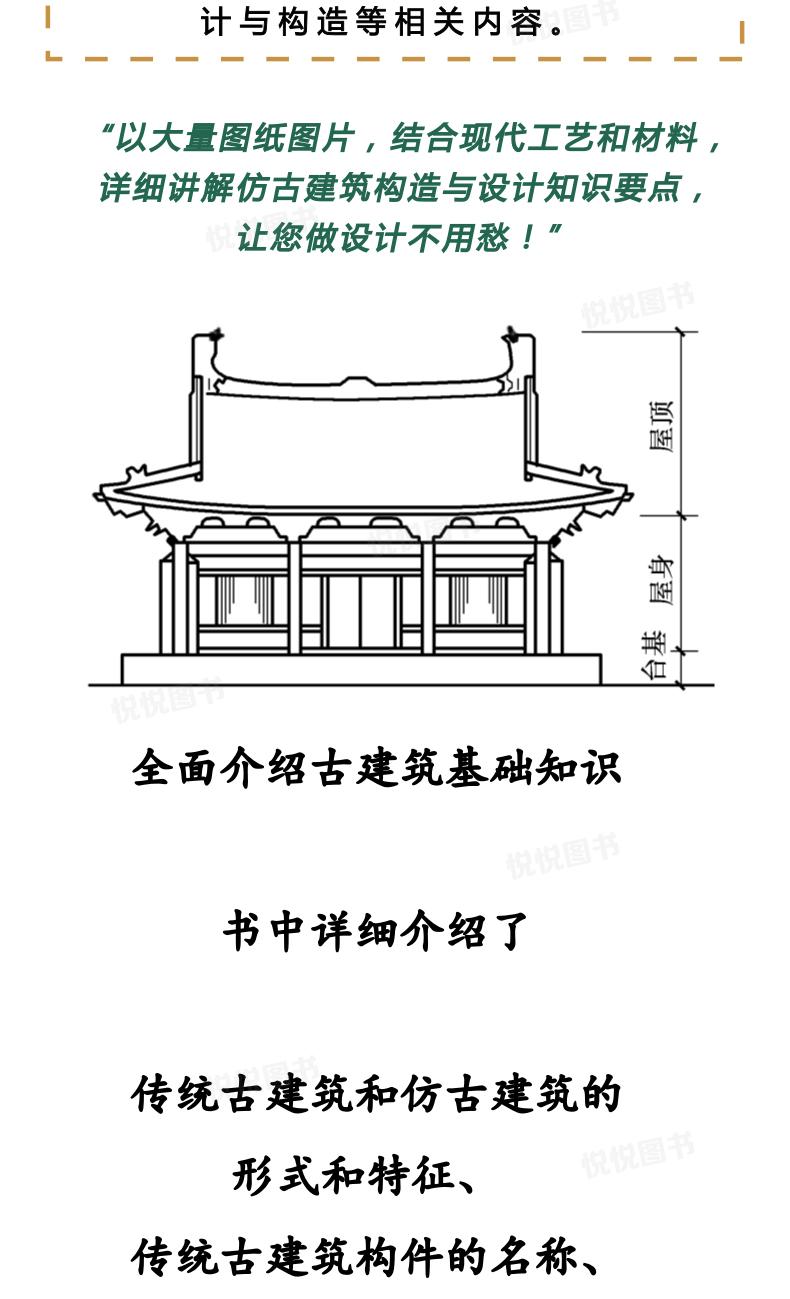 1.內容。從古建築基礎、牆體、木構架、鬥栱、屋頂、裝修到彩畫,講解古建築構造知識。