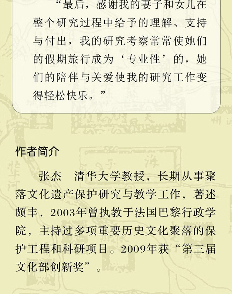 張傑,清華大學教授,長期從事聚落文化遺產保護研究與教學工作,著述頗豐,2003年曾執教於法國巴黎行政學院,主持過多項重要歷史文化聚落的保育工程與研究計畫。 2009年獲「第三屆文化部創新獎」。