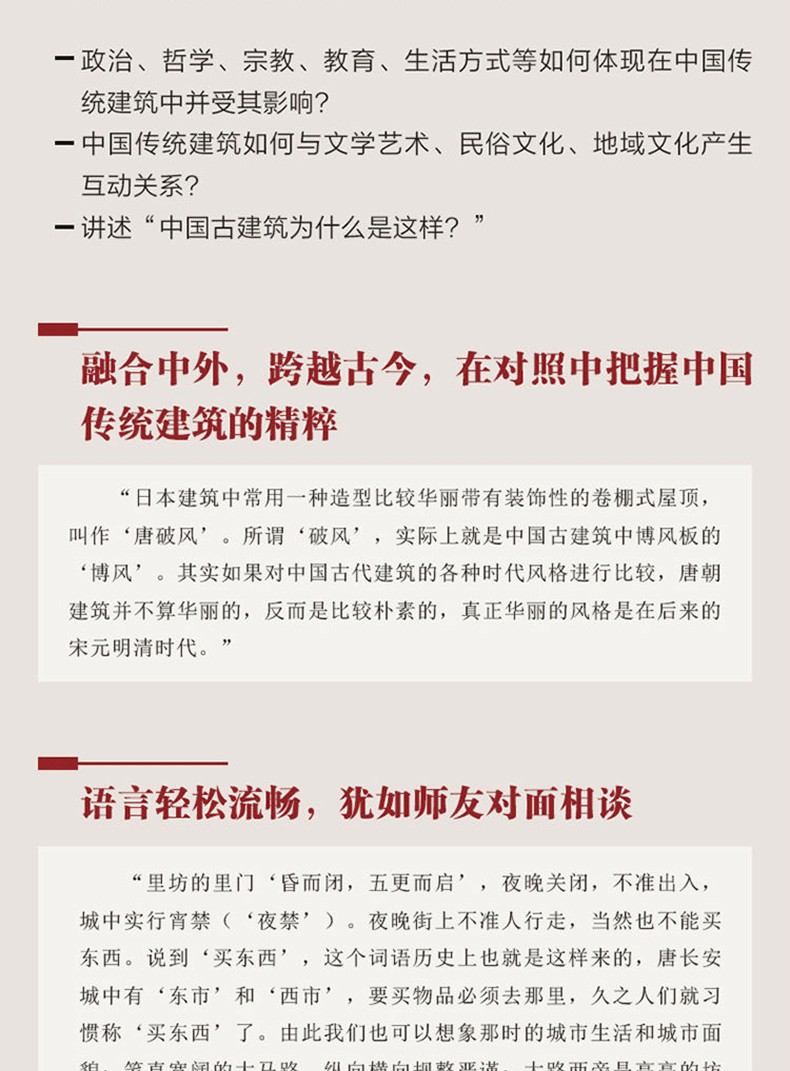 《營建的文明:中國傳統文化與傳統建築(修訂版)》內容超越建築學的界限,旨在向大眾介紹傳統建築的寶貴價值,增強文化自信,促進文化遺產的保護和繼承。 《營建的文明:中國傳統文化與傳統建築(修訂版)》適用於一般讀者及建築學方向的學生。