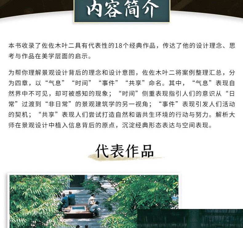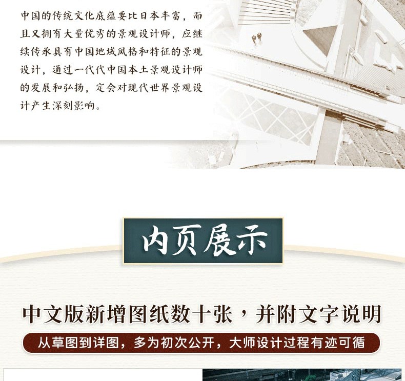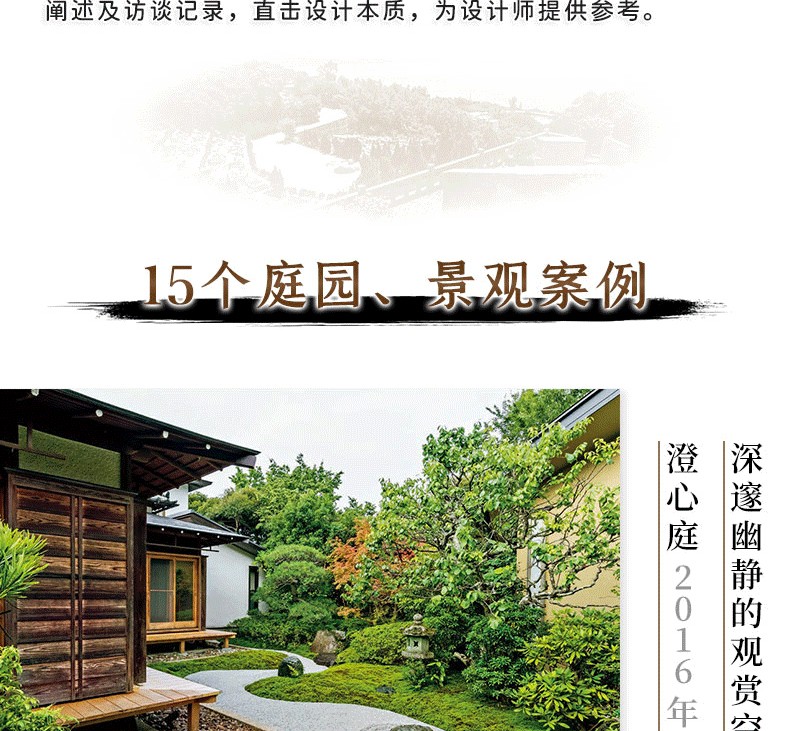 2 項目時間新:不同於市面已有圖書,本書收錄了枡野俊明近期的景觀作品,包括私人住宅庭院、公寓中的庭院和公共空間庭院三大板塊。由學者米拉•洛克分析闡述,圖文並茂地展示了近400張高清圖片。每個項目配以實景、平面圖、分析圖等,並相應提煉出15條設計原則,有利於景觀設計師學習設計要點,啟發設計靈感。