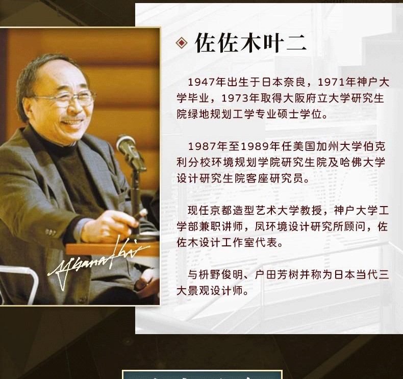 佐佐木葉二,日本當代三大景觀設計師之一,現任京都造型藝術大學教授,神戶大學工學部兼職講師,原“鳳”環境設計研究所所長、一級建築師。日本傳統的枯山水園林受日本人苦行自律的性格影響,幾乎摒棄了所有動態景觀,而是使用一些靜止不變的元素。而佐佐木葉二通過對日本傳統造園元素的提煉,結合實際情況,用現代技術及造園手法(極簡主義),創造了具有禪意的“新和風”景觀。在佐佐木葉二的作品中,從石材到植物的使用,都能看到其基於日本庭院的傳統技術和歷史記憶的表現。在他的作品中,有著強烈的主要思想......
