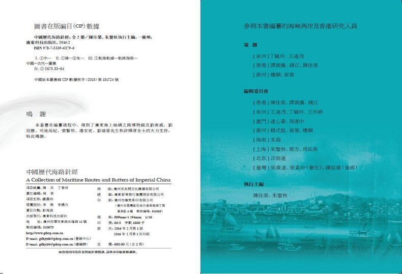 書中也附有「民國以來的針經—更路簿提要」「古代針路往來港口地名表」「南海諸島中外及民間名稱對照表」「中國古代海路交通大事表(前6000—公元1912 )」。