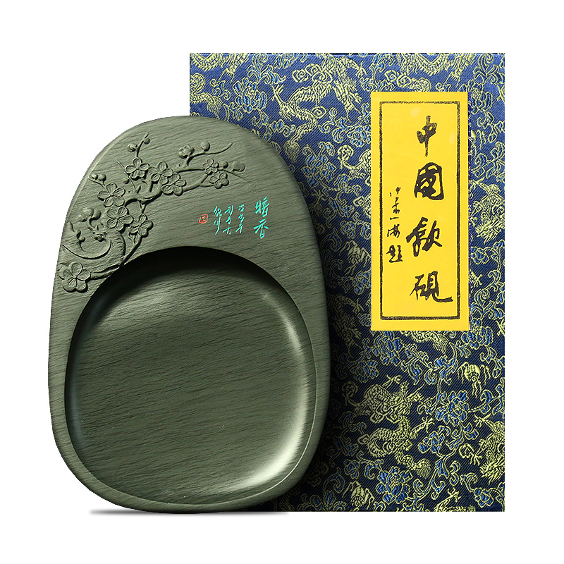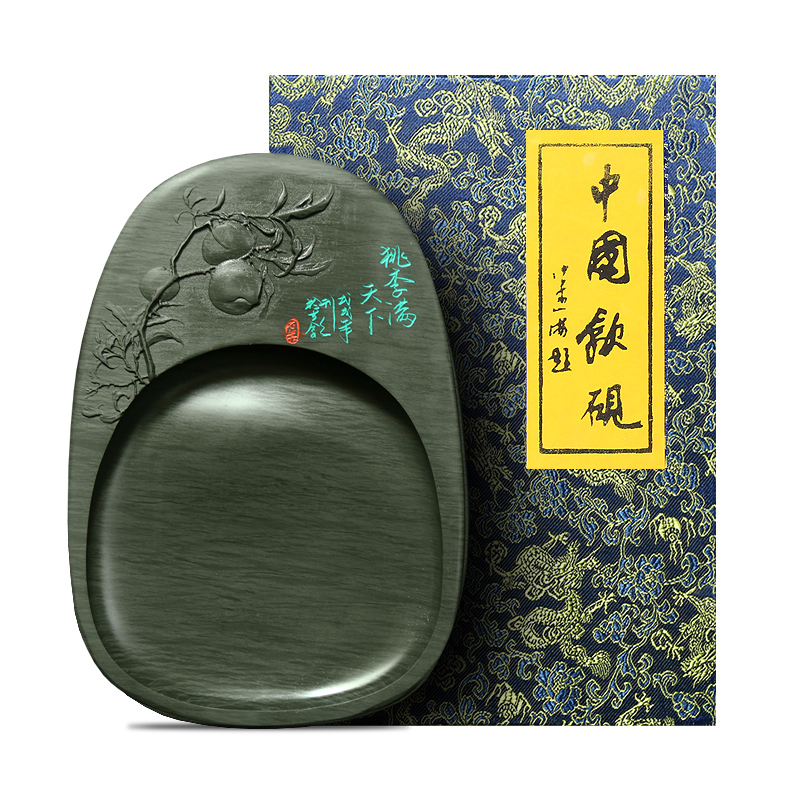 非遺天然原石歙硯 名師張子堅手製 龍尾山老坑黑龍尾小楷精品硯台 (14.5*14.5*3.2cm)精美禮盒包裝