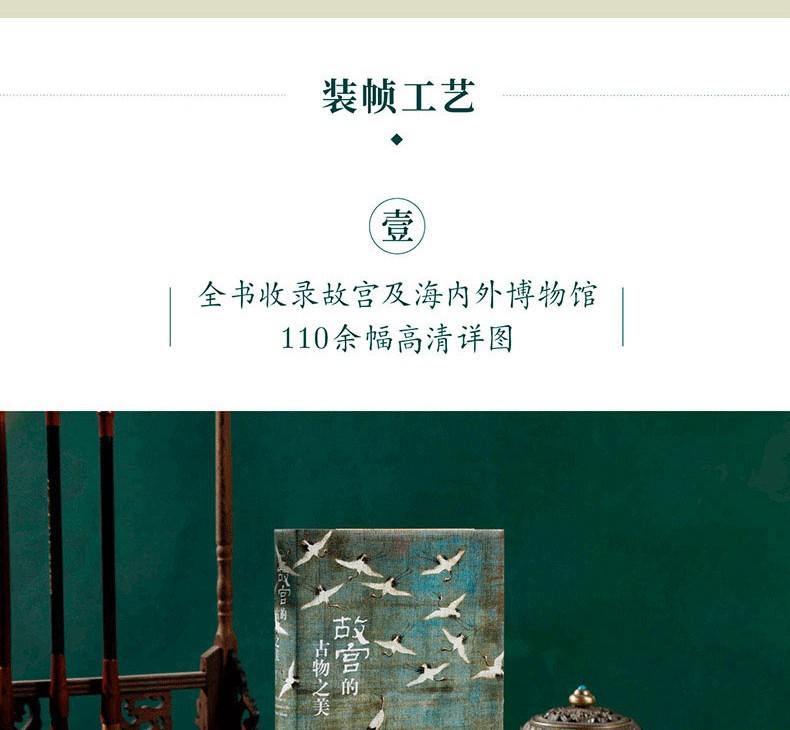 全書收錄故宮及海內外博物館近百幅高清詳圖,內文采用超感紙四色印刷,精裝殼封採用麻布紋紙輔之以燙金工藝,精裝外封採用雅絲紋紙輔之以高精度印刷工藝,做工精良。
