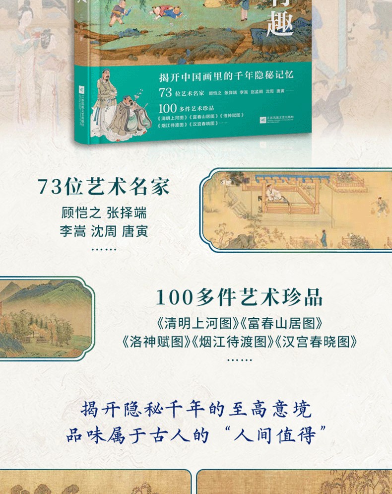 《中國畫超有趣 人間煙火》分為五章,第一章 人在旅途中。 「人生如逆旅,我亦是行人」道盡了人在世間,身不由己,奔波行走的典型狀態和普遍規律。 第二章 人生待渡。 從五代到兩宋,再到元明,每個時代的人都有各自不同的行旅目的和奔波主題。 中國古代的畫家也牢牢地把握住了古人遷徙奔波的場景,並忠實地把它們記錄了下來。 第三章 各安所居古人是如何建構自己理想的居住、生活模型的呢? 存世的宋元明清的大量古畫,比較真實地為後人記錄了古人的建築、居住和生活的情況。 第四章 世間風貌。 古畫中還有許多有專門用途的建築,服務於不同的功能和業態,