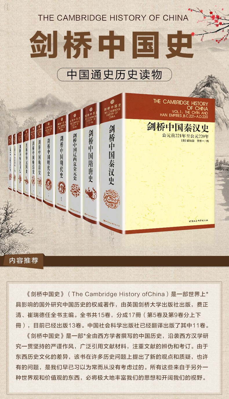 西方對秦漢史的研究有相當長的歷史。本卷《導論》對此有概括敘述,一直上溯到明清之際來華的傳教士衛匡國的著作。中國的二十四史開始於《史記》、《漢書》,讀史者也總是從前四史入手,所以一接觸中國史就是秦漢,同時秦漢在整個中國史 上又有其特殊的重要位置。西方學者研究秦漢史的較多,成績也較豐碩。看本卷所附參考文獻目錄,便可得到相當的印象。這部《劍橋中國秦漢史》,正是在這樣的基礎上加以綜合和進步的。不很熟悉西方研究狀況的讀者,透過本卷不難知其涯略。卷中引用日本學者的論點也很多,足供讀者參取。