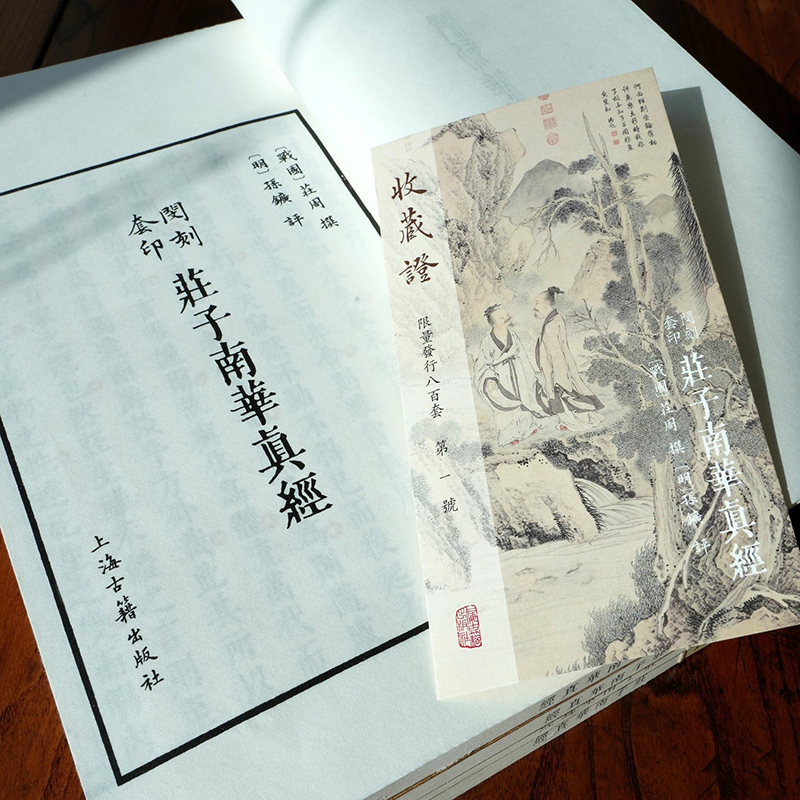 明閔齊伋,字及武,號遇五,烏程(今浙江湖州)人。曾入國子監,家富資財,不求功名,唯好藏書、編書、刻書。首創書籍套印技術。所刻書以實用為主,包含經、史、子、集以及小說、戲曲,多為套色印本,與凌濛初刻本齊名。 《莊子南華真經》是閔齊伋所刻子部類《三子合刊》之一,選錄明代著名學者孫鑛的評點,對《莊子》一書字句、章節的藝術特色、寫作技巧作了精彩點評,可以讓我們從文學角度來欣賞這部千古奇書,並學習其特色文法。本書原為朱墨套印,正文為黑色,斷句、批點為紅色,悅人眼目,堪稱書中的藝術品,可藏可讀可賞。本書據上海圖書館藏明末閔齊伋輯《三子合刊》本套色影印。