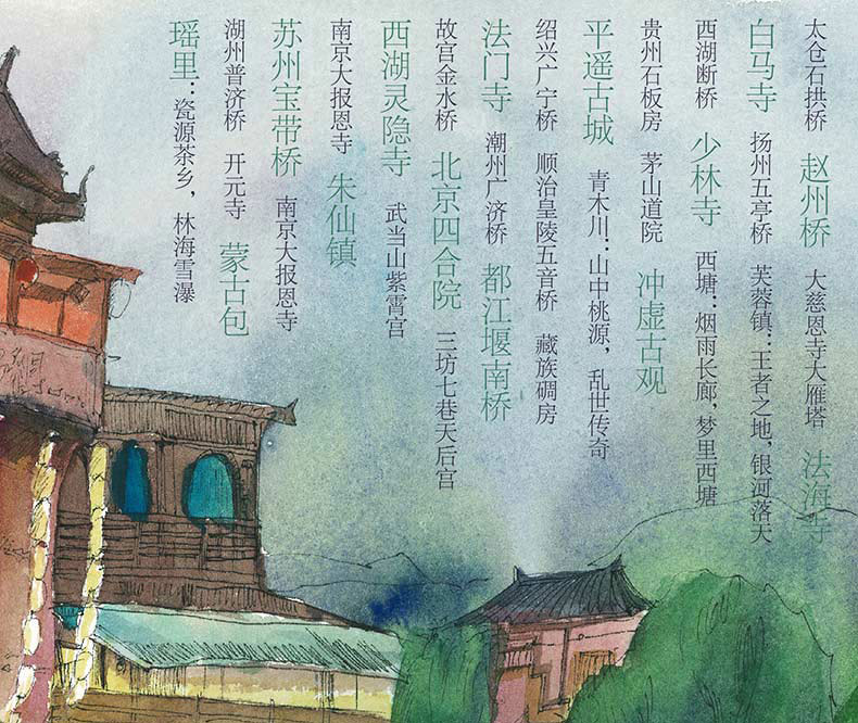 特色1:75幅手繪水彩插畫,以繪畫測量中國。
