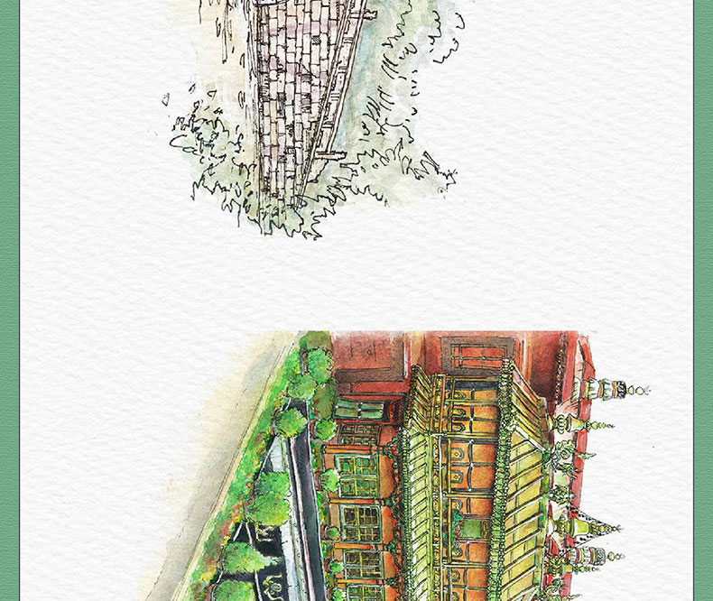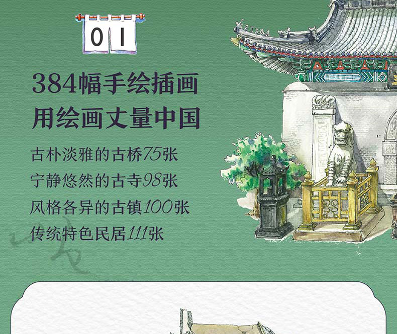 特色1:100幅手繪水彩插畫,以繪畫量測中國。