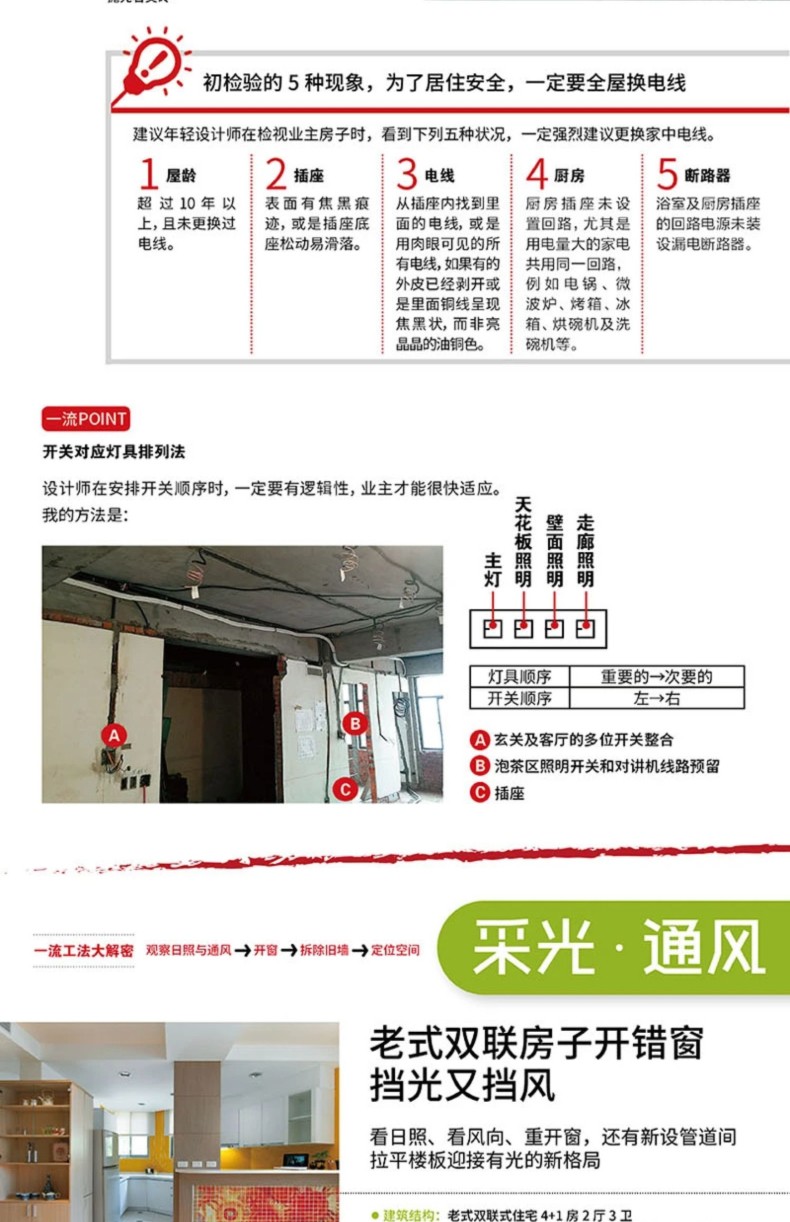 真實案例示範:解決提案+施工流程。 實戰面對屋齡超過30年以上問題百出的透天住宅、長型公寓、挑高住宅、老式電梯高層住宅、甲醛過多,只要碰到難題發生,一定要請多位師傅來評估,經驗不同才能找 出好的方法。