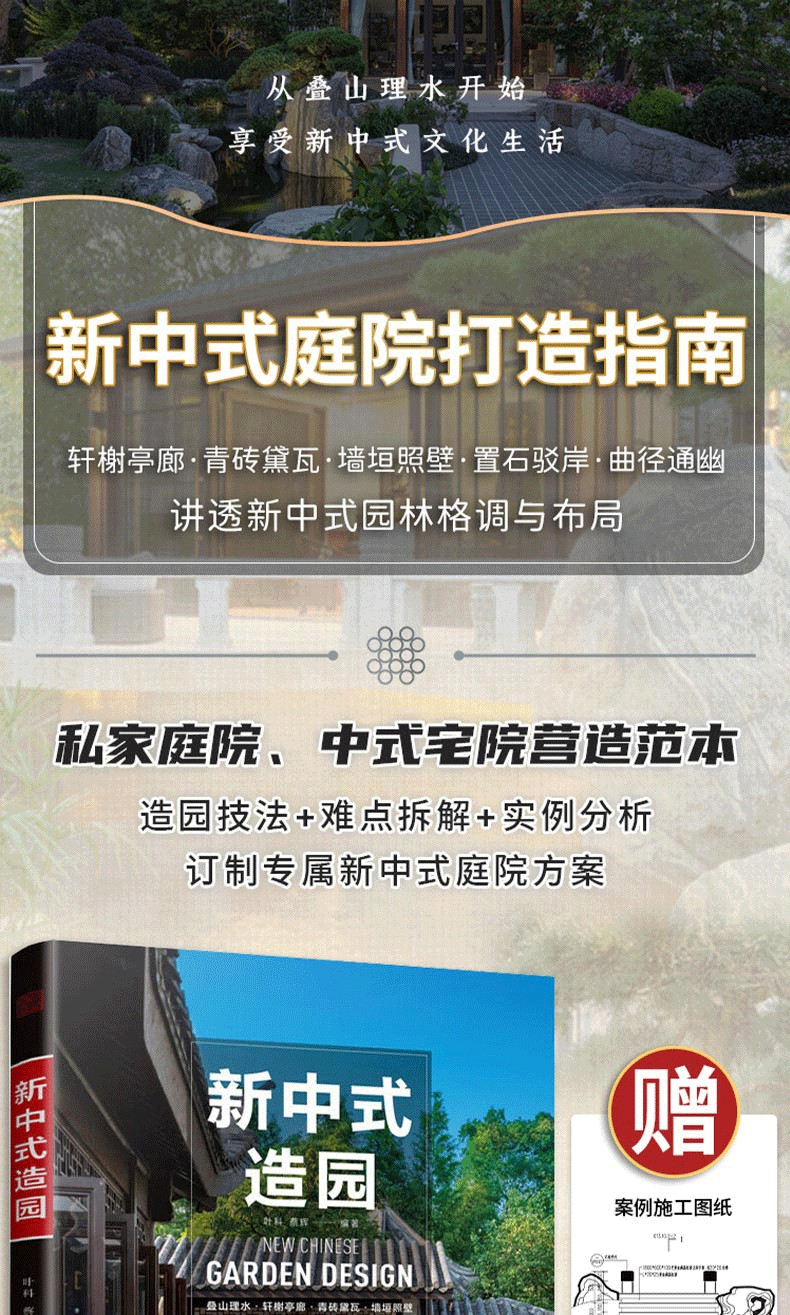 本書內容主要包括四大部分,分別是新中式庭院景觀特色、景觀營造技巧、植物搭配和造園分享,既含具體的技法分析,也有實景的項目展現,希望能給造園愛好者或正待修建庭院 的園主提供一些