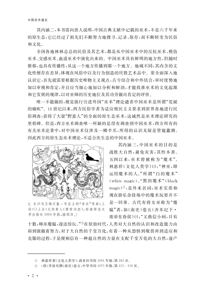 但是,不要以為單純依靠翻檢浩如煙海的中國古典文獻,就能夠將中國巫術史尤其是通史寫成。辛亥革命以來出現過諸多大學者,他們對巫與巫術發表過非常精闢的見解,但當時並沒有具備寫成中國巫術史的條件。因為中國是個擁有五十六個民族的偉大國家,要寫成一部巫術史不能單靠堆積單一的文獻資料,它必須有民俗資料配合,和各學科文化發展齊頭並進、互相呼應,才能形成一個巫文化傳承整體。