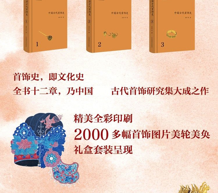 《中國古代首飾史》的撰寫工作耗時四年,體例上以朝代為順序,以中國古代首飾的五大門類“頭飾”“耳飾”“臂飾”“頸(胸)飾”“手(足)飾”的發展歷史為主要內容,以首飾的文化闡釋為線索撰寫而成,是一部關於中國古代首飾歷史、文化、類型、題材、紋樣、製作等等的綜合性圖書。