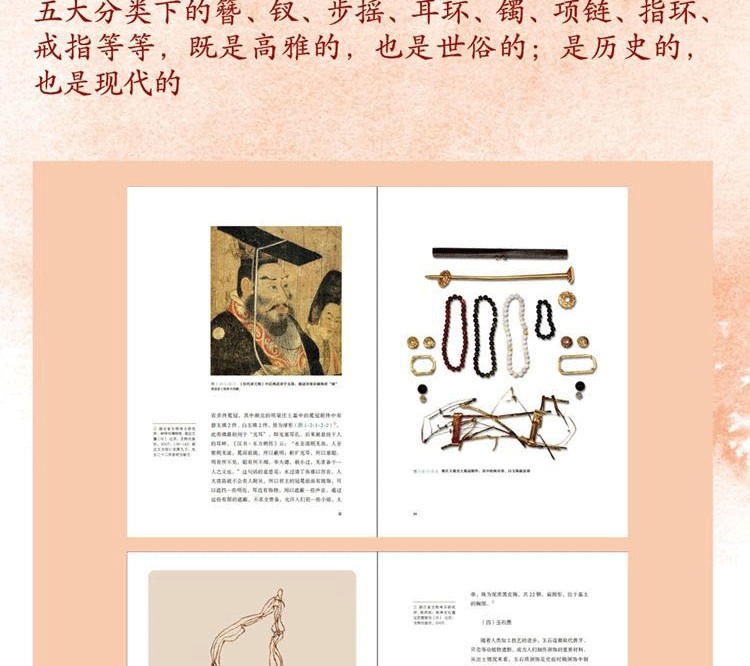 因首飾款式繁複、名目眾多,首飾名生字居多,書中提供了2000多幅高清精緻圖和100多個圖表,每張圖片詳細標註出土地點、收藏機構、尺寸、材質和資料出處,科學清晰,使之成為相關研究的一個系統的科學依據。