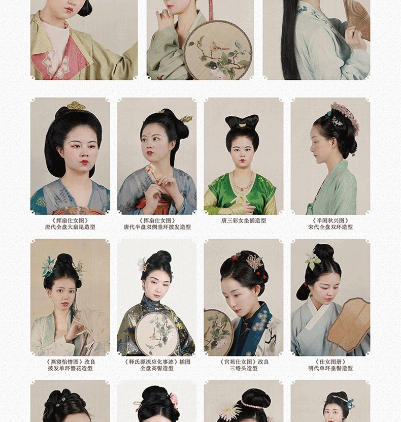 《揮扇仕女圖》唐代半盤雙側垂環披髮造型 134