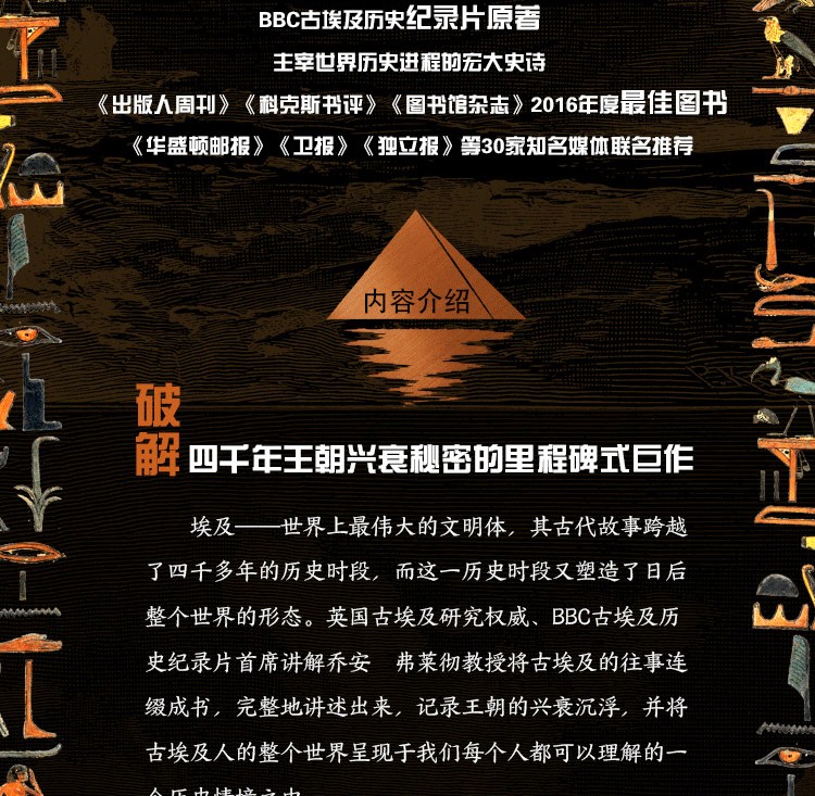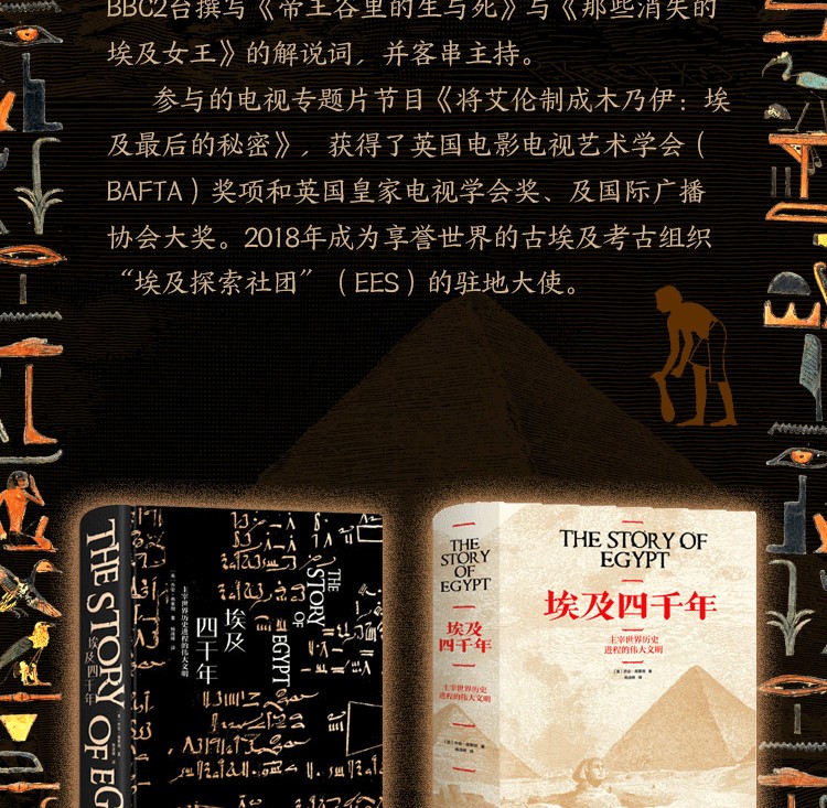 埃及世界上偉大的文明體,其古代故事跨越了四千多年的歷史時段,而這一歷史時段又塑造了日後整個世界的形態。 《埃及四千年:主宰世界歷史進程的偉大文明》將古埃及的往事連綴成書,完整地講述出來,記錄王朝的興衰沉浮,並將古埃及人的整個世界呈現於我們每個人都可以理解的一個歷史情境之中。