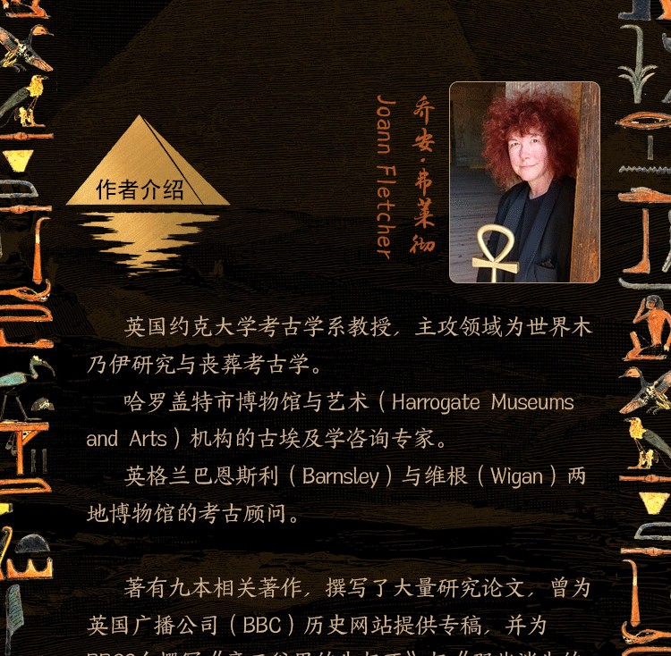 喬安·弗萊徹,英國約克大學考古學系教授,主攻領域為世界木乃伊研究與喪葬考古學。哈羅蓋特市博物館與藝術機構的古埃及學諮詢專家、英格蘭巴恩斯利(Barnsley)與維根(wigan)兩地博物館的考古顧問。著有九本相關著作,撰寫了大量研究論文,曾為英國廣播公司(BBC)歷史網站提供專稿,為BBC2台撰寫了《帝王谷裡的生與死》與《那些消失的埃及女王》的解說詞,並客串主持。參與的電視專題片節目《將艾倫製成木乃伊:埃及最後的秘密》獲得了英國電影電視藝術學會獎、英國皇家電視學會獎及國際廣播協會獎。 2018年成為享譽世界的古埃及考古組織“埃及探索社團”(EES)的駐地大使。