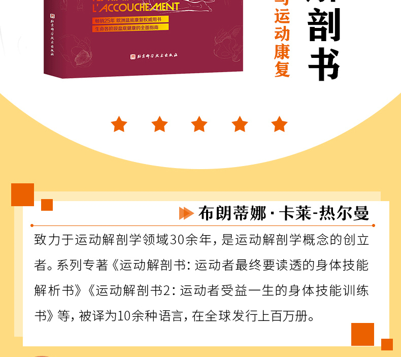 布朗蒂娜·卡萊-熱爾曼,致力於運動解剖學領域30餘年,是運動解剖學概念的創立者。系列專著《運動解剖書:運動者最終要讀透的身體技能解析書》《運動解剖書2:運動者受益一生的身體技能訓練書》等,常年位居法國亞馬遜醫學類解剖學分類、運動拉伸類暢銷書榜首,被譯為10餘種語言,在全球發行上百萬冊。
