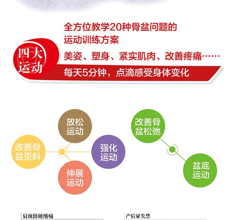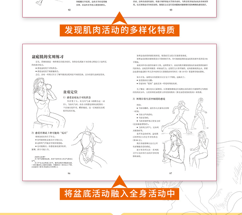 感覺識別練習、柔韌練習、強化練習及協調練習,讓女性更清楚如何發現和重建盆底功能