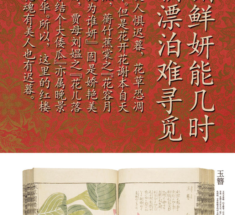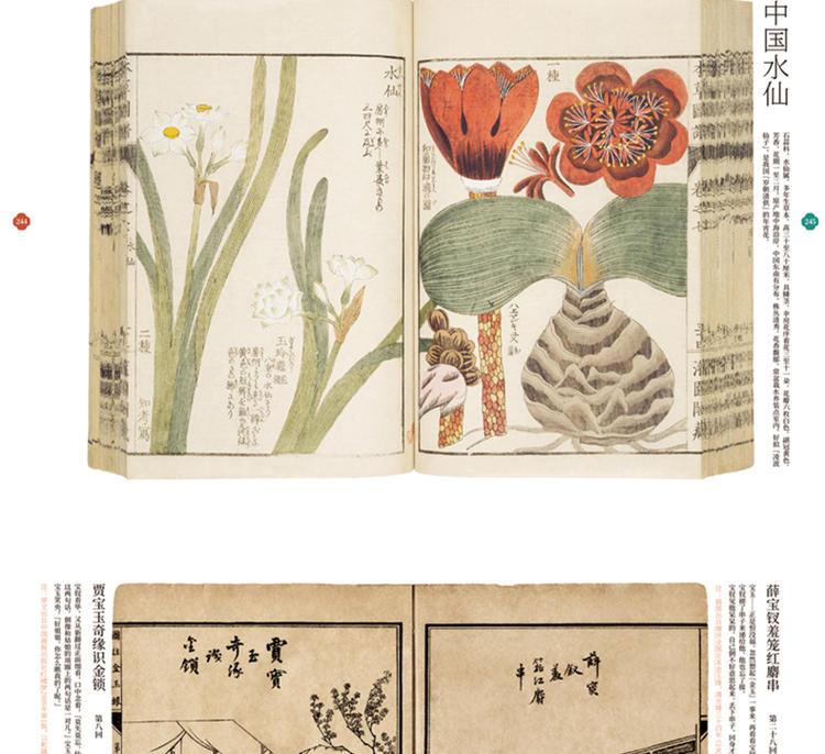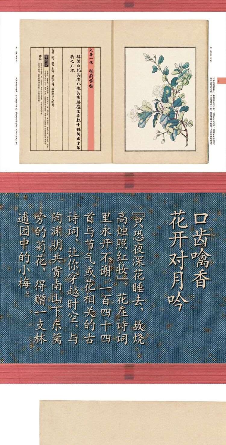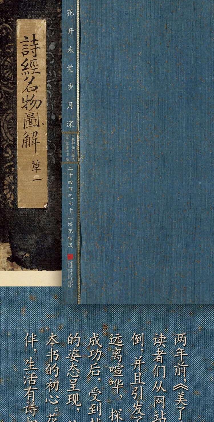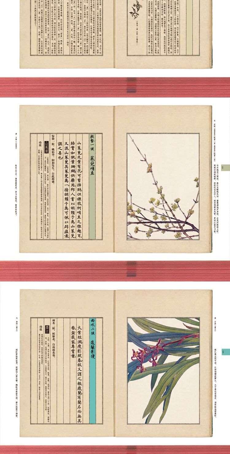 《幾回清夢到花前:紅樓女子的草木情緣》由《紅樓夢》原文提取或引申,以花喻人,探討了《紅樓夢》中四十三位女性的花草映射和八種可窺見精雅生活的代表植物,配有五十餘幅日本江戶時代有名本草學家岩崎常正《本草圖譜》手繪原稿及九十四幀清光緒求不負齋《增評全圖足本金玉緣》繡像,將古典文學與植物學完美融合,角度獨特,為諸多“紅迷”提供了《紅樓夢》的另一種打開方式。裝幀設計方面延續《美了千年,卻被淡忘:詩經名物圖解》以及《花開未覺歲月深:二十四節氣七十二候花信風》的“書中書”形式,裸脊鎖線裝訂,三面朱紅色刷邊。圖美、文美、設計美,是一本的品味紅樓文化的良心之作。