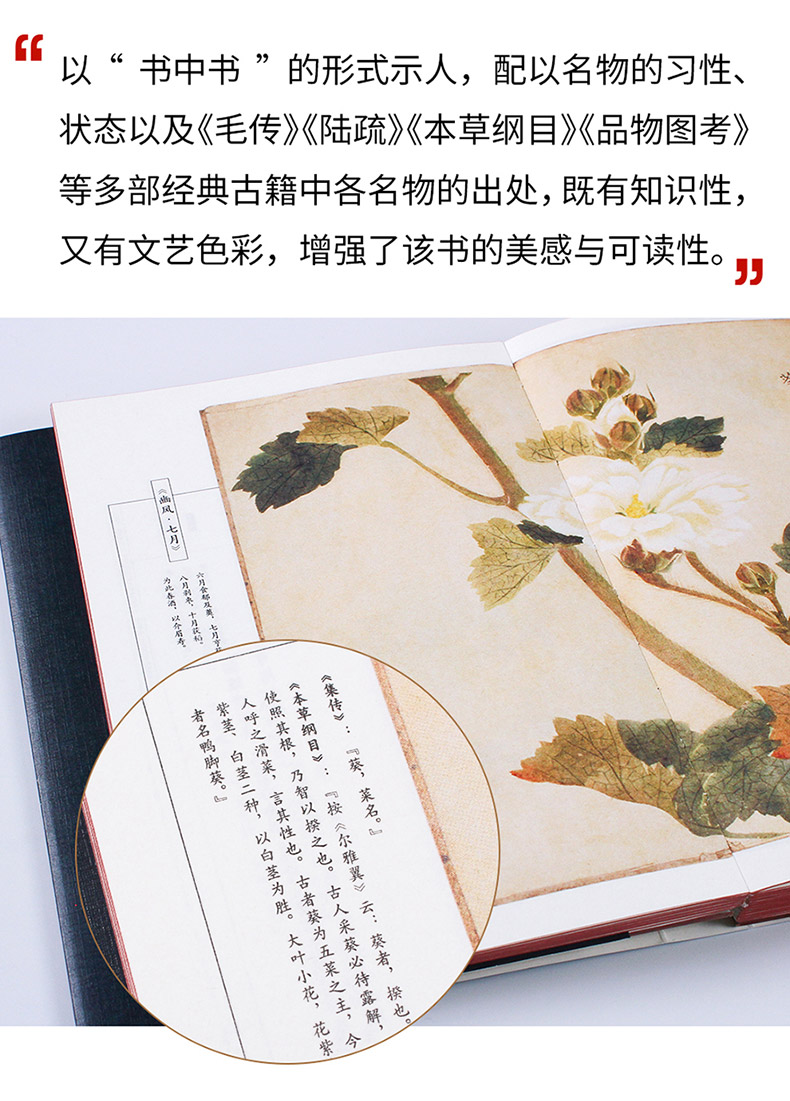 1.人花相喻,作者在文中生動地探討了《紅樓夢》中四十三位女性的花草映射和八種可窺見精雅生活的代表植物; 2.配以五十餘幅日本江戶時代有名本草學家岩崎常正《本草圖譜》的手繪原稿; 3.佐以九十四幀清光緒求不負齋《增評全圖足本金玉緣》繡像; 4.中國農業大學園藝學教授義鳴放對五十餘種植物進行學術鑑賞。另外,中國國家博物館研究館員丁鵬勃作序推薦。值得一提的是,本書中的女性不僅有寶釵、黛玉等十二釵的嬌豔美好,也有賈母、劉媼等的“美人遲暮”。此外,本書與《美了千年,卻被淡忘:詩經名物......