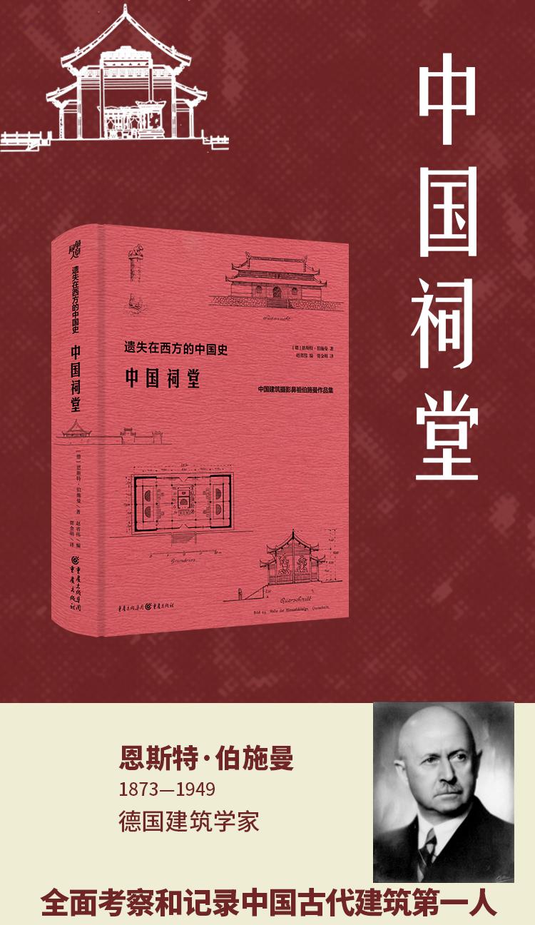 本書是西方早期研究中國祠堂建築的著作,初版於1914 年,共收錄250餘幅插圖和照片、數十萬字的文字描述和闡釋。 作者足跡遍及大半個中國,考察了眾多具有濃鬱地方色彩和民族風格的祠堂建築,從歷史、民俗、宗教和建築等角度,對其整體設計規劃和各種陳設作了細緻的描述。 由於戰亂以及外國人對中國文物的掠奪等因素,書中呈現的許多祠堂建築實物已經不復存在,伯施曼的一系列著作因而成為中國古建築史領域極具史料和藝術價值的作品。