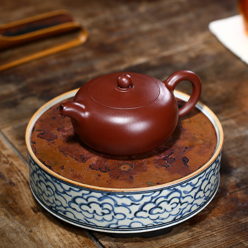原礦朱泥全手工大紅袍小容量子怡石瓢紫砂壺100cc