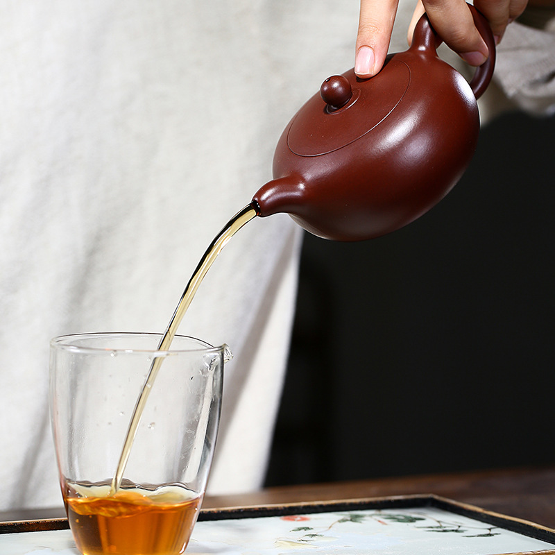宜興手製小容量大紅袍西施紫砂壺100cc