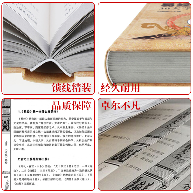 《易經》是中國古代最早涵蓋天、地、人三界的哲學著作,是華夏文明的源頭,被奉為經典中的經典,哲學中的哲學,智慧中的智慧。 幾千年來,無數人被《易經》的魅力所折服,研究它的著作多達數千種,形成了人類文化歷史上獨一無二的學術奇觀。 老子、孔子、董仲舒、司馬遷、鄭玄、阮籍、王弼、陸德明、孫思邈、孔穎達、蘇遼、歐陽修、程頤、朱熹、王陽明、王夫之等都是著名的易學大師。 不只在中國,在國外,《易經》的影響也是深遠的。 日本漢學家本田成之說:「《易經》乃是中國人一切智慧的基礎,是唯物主義及其規律的基礎。」歐洲哲學家捷思說:「談到人類智慧寶典,首推中國 《易經》。」德國哲學家黑格爾甚至在自傳中承認他所創造的正反合辯證邏輯定律,正是得於《易經》的啟發。 這是一部在尊重原著的基礎上,結合歷代學者的易學研究成果,用現代的視角,綜合圖片、專題等多種要素對《易經》進行了全新演繹的經典智慧讀本。