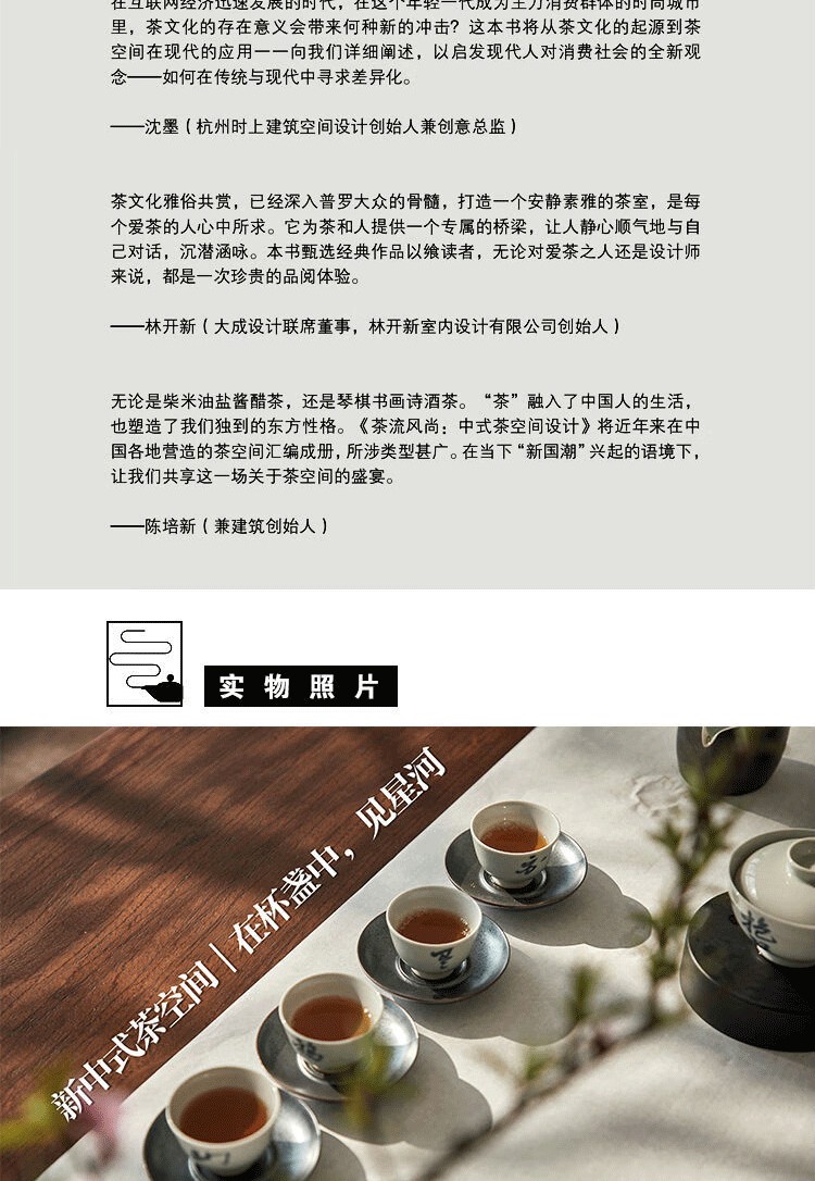 本書首先向讀者介紹了中國茶文化,繼而引出有關茶空間設計要素的概述,配合茶空間的實景案例,使讀者逐步了解茶空間的設計理念和設計過程,加深對茶空間設計的理解與思考 。 本書主要內容包括中國茶文化的起源與發展、茶空間的起源與發展方向、中式茶空間的設計元素、中式茶空間在設計中所遵循的原則、實景案例。 本書採用從理論向案例過渡的編寫形式,理論內容豐富且淺顯易懂,案例新穎時尚,可作為室內設計師、設計院校師生、茶室經營者及相關從業者、喜歡茶文化的大眾讀者參考 使用。