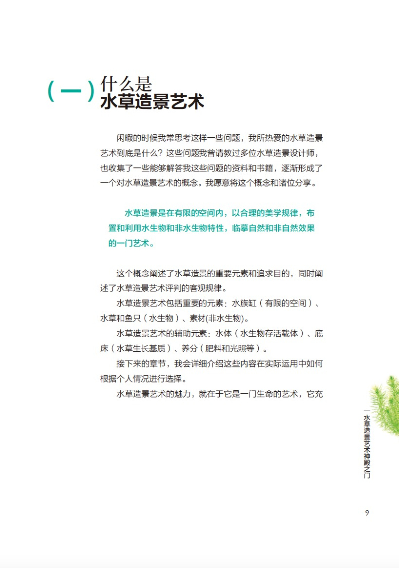 水草造景藝術在中國的發展目前雖然滯後於其他國家,但近年來,這個領域得到了越來越多愛好者的關注。我希望《水草造景藝術:從入門到精通》這本書能給所有的水草造景愛好者提供一些幫助。全書從實用的角度出發,從一個普通愛好者實踐者的角度講解了水草造景藝術從入門到精通的進階過程。希望更多朋友通過閱讀此書參與到水草造景的討論和實踐中來,讓水草造景藝術繼續發揚光大,能讓更多的人成為水草造景愛好者,步入到水草造景的藝術殿堂中。