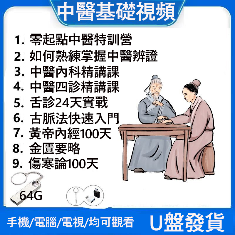 零基礎學中醫視頻教程U盤64G(無需下載,直接觀看)傷寒論,黃帝內經,金匱要略,舌診,脈診等基礎視頻教程(手機電腦電視都可以觀看)