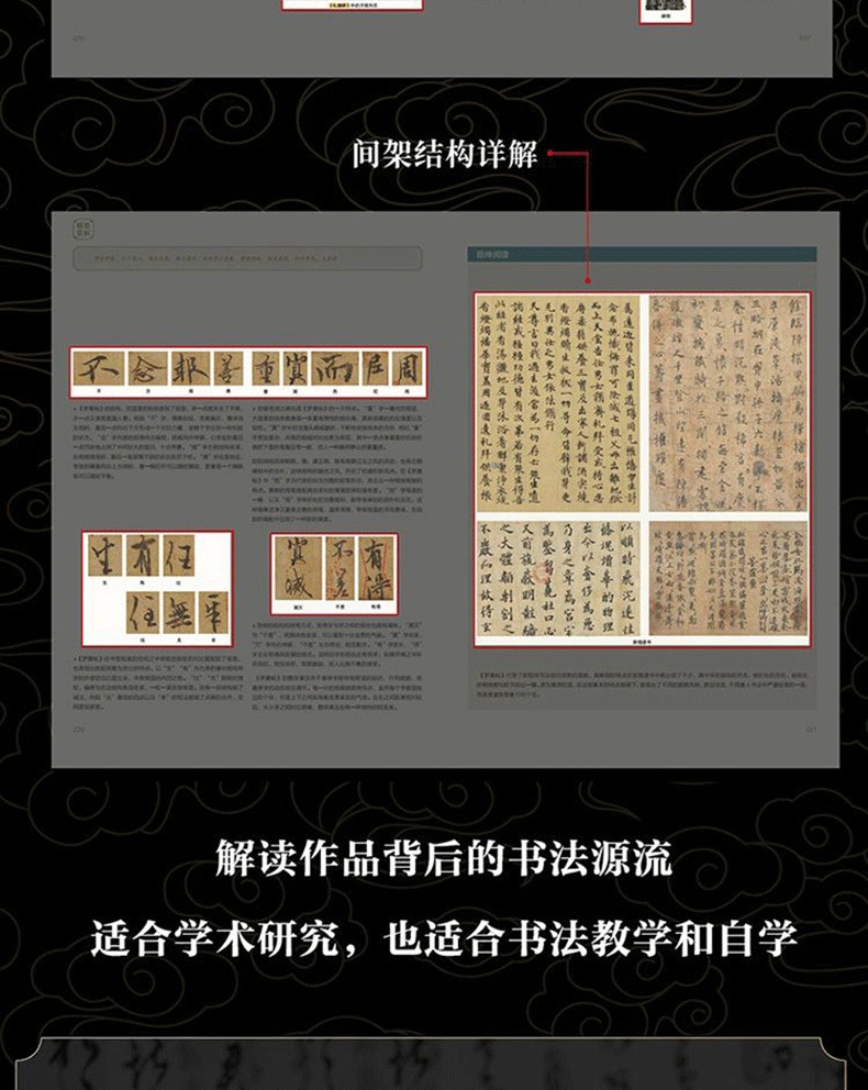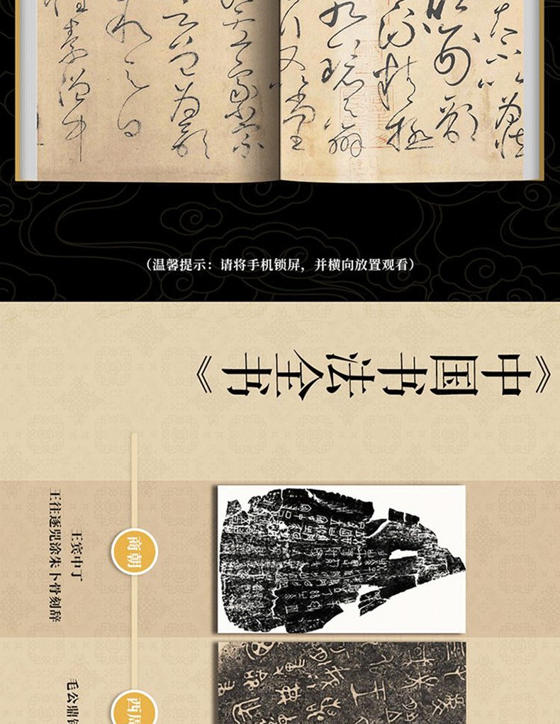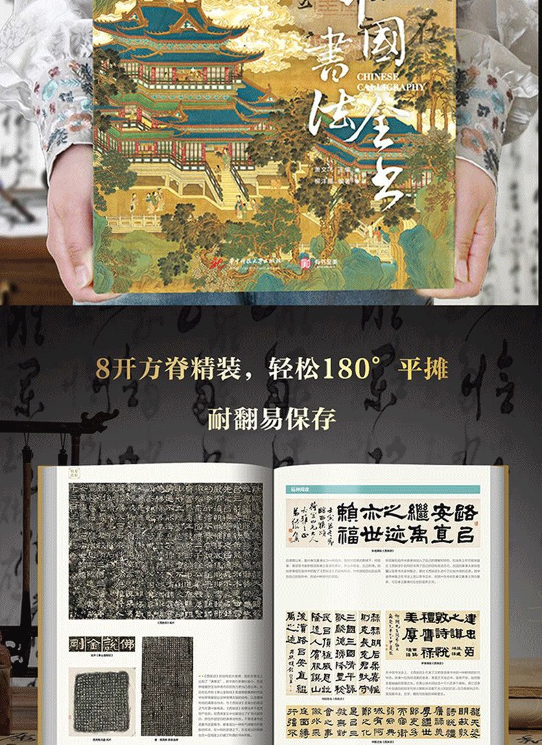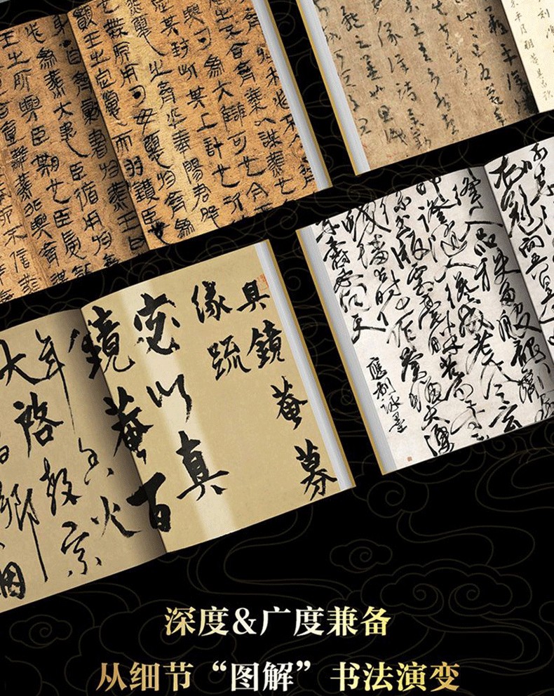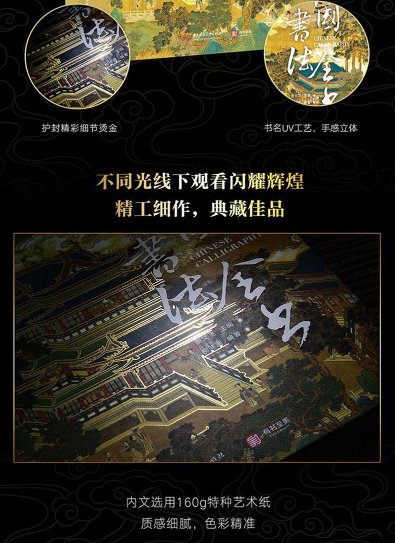 其中,書法的不同形式,涉及甲骨文、碑貼、書法、書畫題跋等,透過圖解形式,配以精準的闡釋,解讀百餘幅的書法史經典,圖文資料獨到經典,簡約深刻,論述通俗而專業,適合讀者輕鬆入手,亦可細品深讀,深切感受中國書法藝術的無窮魅力。
