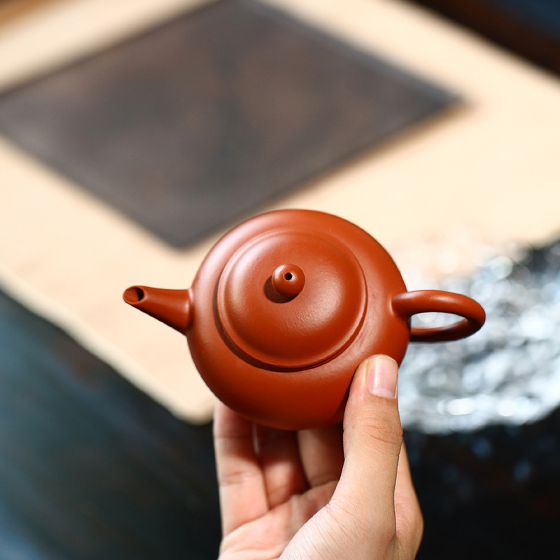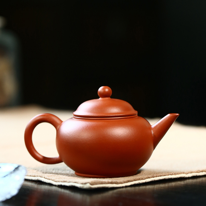原礦朱泥全手工大紅袍小容量子怡石瓢紫砂壺100cc